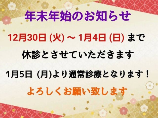年末年始の休診のお知らせ